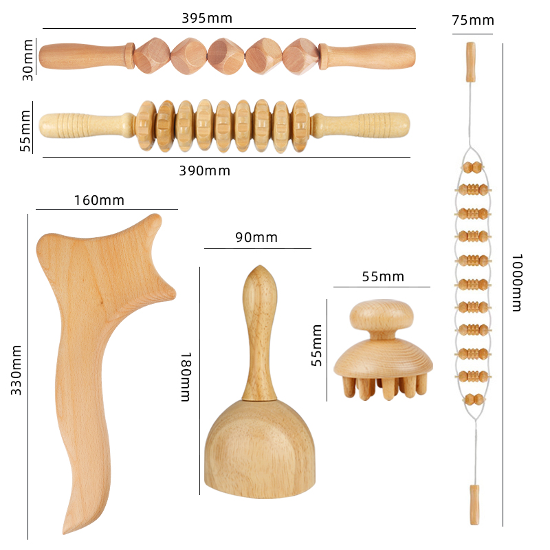 Houttherapie Cellulitis Massager Full Body Lymfedrainage Roller Rug Nek Been Spier Relaxatie Tool Set